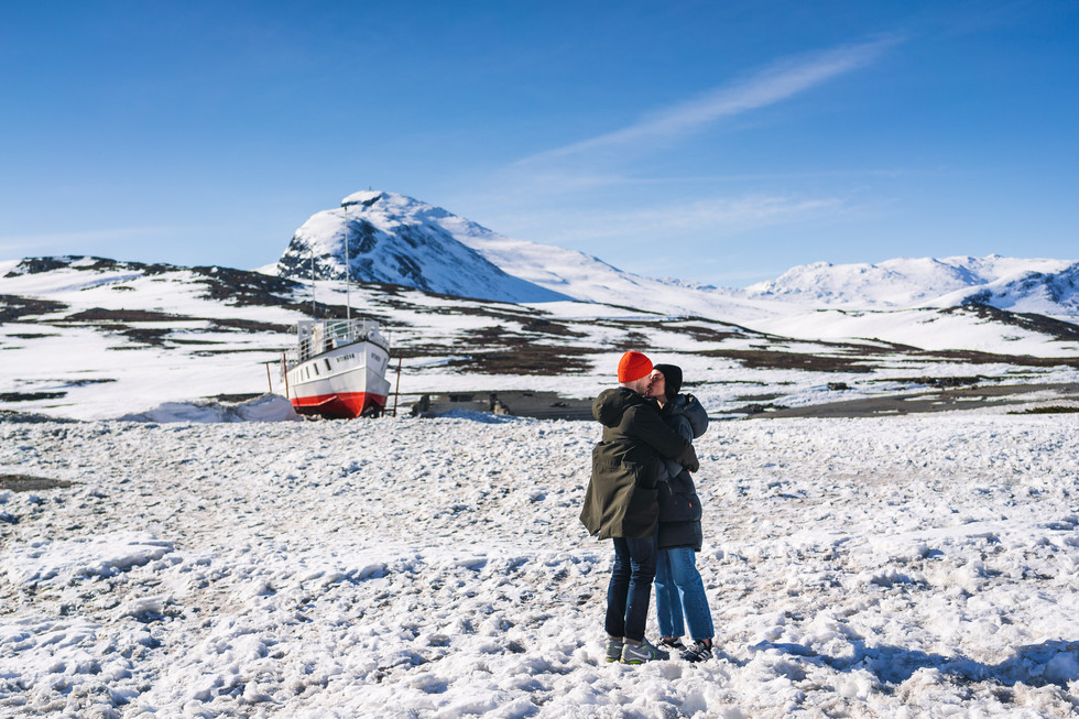 Da jeg tilbrakte noen flotte dager på Beitostølen i påsken sammen med familie, benyttet jeg selvfølgelig anledningen til å møte Anniken og Frederick for å knipse noen bilder i vakkert påskevær nede ved Bygdins bredder. M/S lå i tørrdokk, snart klar for nok en sesong i fantastiske Jotunheimen. Frederick er innfødt "Valdriss", og jobber som profesjonell fotograf på Hamar, hvor også Anniken driver egen bedrift innen hudpleie og velvære. Nok et utrolig flott og hyggelig par som jeg storkoste meg sammen med, og som jeg er veldig glad for å ha blitt litt kjent med! (Ikke minst var det gøy å fotografere en fotografkollega!)